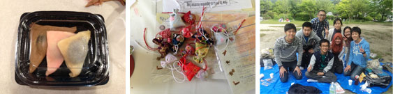 In Golden Week, I went to a picnic with some of my classmates in the park near Heanjingu-shrine. We ate lunch together and played badminton, card, and other games. It was really fun because there was a punishment if you lost the game. In the last game, the one who lost was punished to ask somebody to take our picture using Korean language. And here are our pictures!
