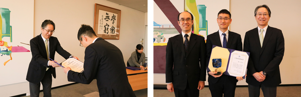 中高生を対象とした講演活動などを通して中高大連携に多大に貢献したことが評価され,桂キャンパス桂ラウンジにて行われた授賞式にて,賞状と記念品を授与されました。